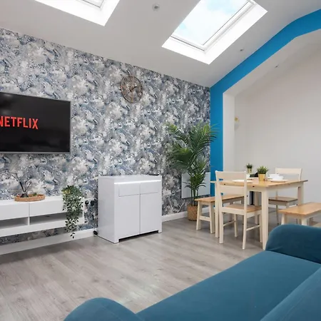 Deze 1-slaapkamer Santorini Blues By Cefas - Free Parking - Sleeps 10 - Near The Airport Villa is gelegen binnen 4 km van het Museum van Manchester en biedt toegang tot tal van toeristische attracties.